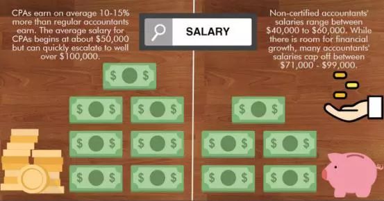 AICPA数据显示,持USCPA执照的注册会计师的平均收入比普通会计师高出10%-15%。Payscale数据,一般而言,持USCPA执照的注册会计师的平均薪资约为50,000美元,但可以在短时间内迅速升100,000美元以上。