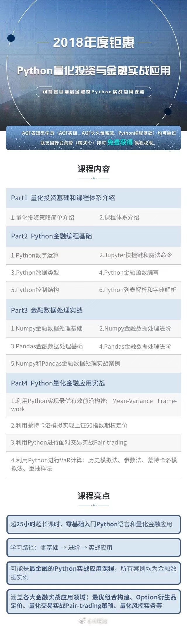 Python量化投资和金融应用课程全新课程,时长25小时+