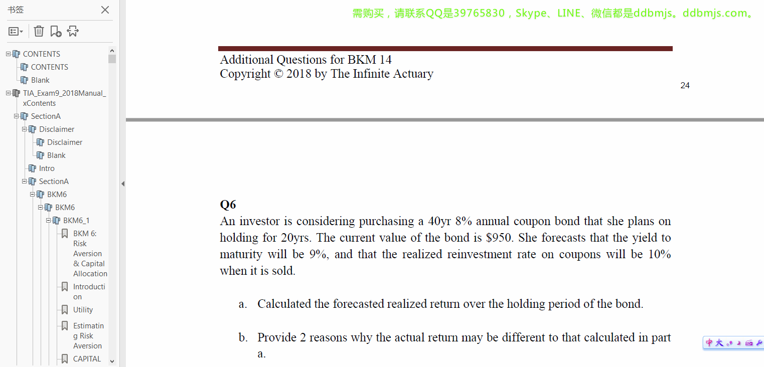 The Infinite Actuary Online Seminar,视频网课,包括TIA自己出的manual, flash card, 练习题,答案,答案讲解,视频网课PPT讲义等等,都是 Spring 2019 的最新版本,科目如下: