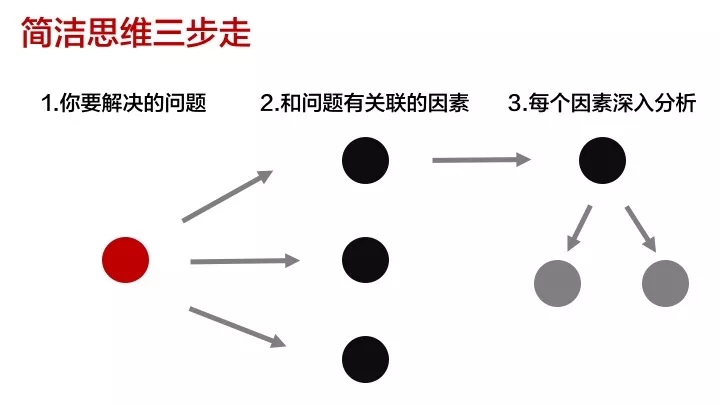 之后我转换思路,从目标本身出发,倒推关联因素,最后再深入分析。用这种简洁思维的模型(如下图),一下子让思考过程变得清晰无比。