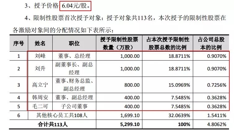 这5299万股中,绝大部分被刘峰、刘升、高立宁、韩周安和毛二可拿走了,占公司总股本的3.3%,如果没有这个股权激励,管理层的持股比例甚至还要低。而前后两次,股权激励的行权条件大同小异,都是以2016年净利润为基数: