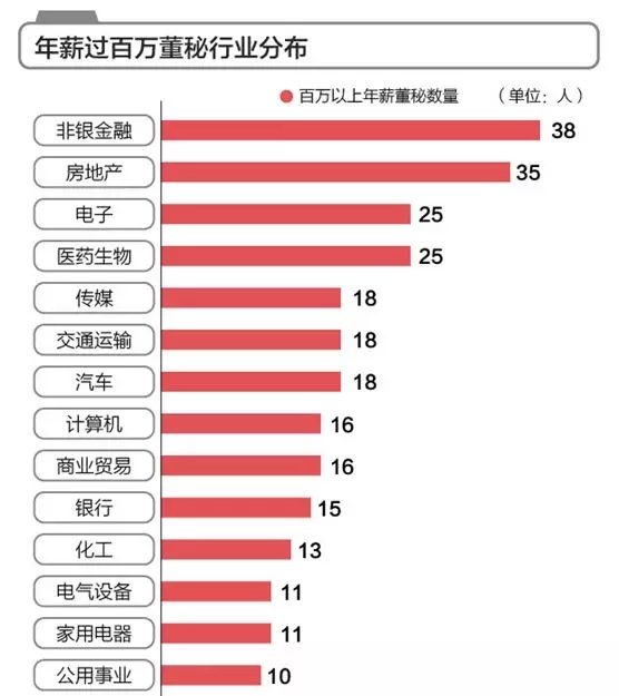 上榜董秘中,所在公司位于广东的董秘最多,为86人,紧随其后的是北京和上海,年薪过百万董秘人数分别为57人和41人。北上广的企业最“慷慨”。