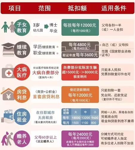 被称之为新版个人所得税改革亮点的《个人所得税专项附加扣除暂行办法》同步出台,明确子女教育、继续教育、大病医疗、住房贷款利息、住房租金、赡养老人支出等6项专项附加扣除。