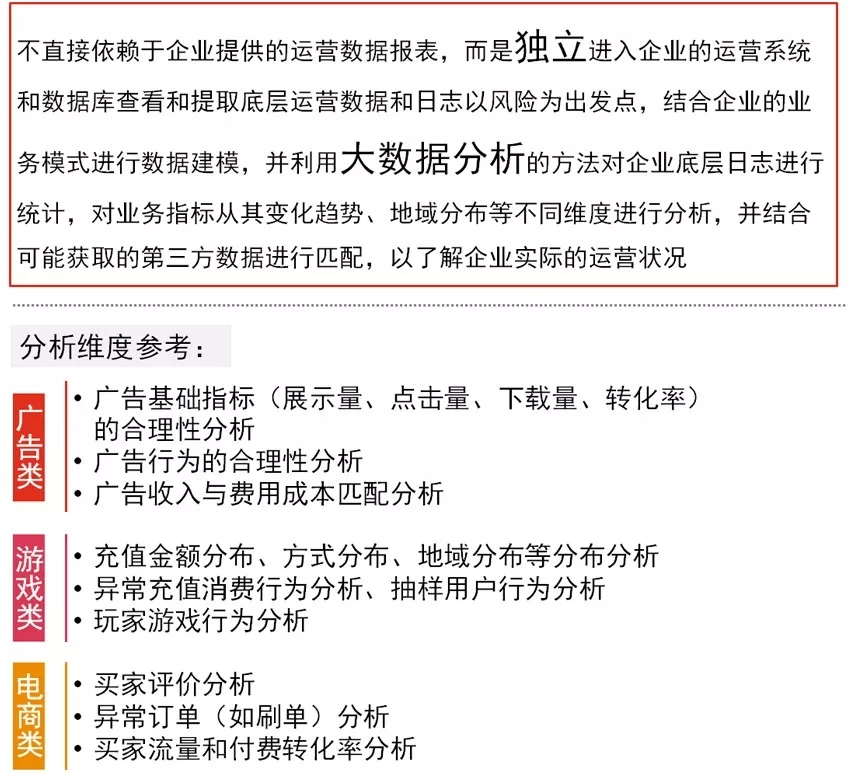 《指引》除了对于传统的信息系统控制的有效性提出核查要求,还首次提出数据分析的要求,要求发行人的保荐机构和申报会计师应通过大数据分析的技术深入了解发行人业务指标和财务指标的趋势和匹配性。由于互联网线上行业数据量巨大,通过传统的尽职调查手段满足监管的要求已变得越发困难。