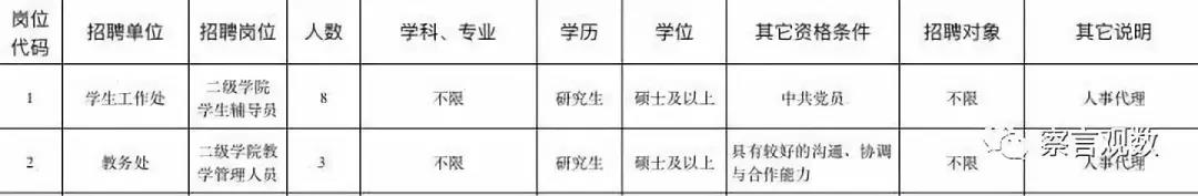 部分高校也会采用「引进人才」的方式招聘专业技术、辅导员岗等硕士教辅人才。如下图,某高校以「引进人才」招聘的行政和辅导员岗,要求硕士及以上学历,提供编制。但在目前全国事业单位改革的大背景下,更多的高校是以人事代理或人才派遣方式,聘用新进行政及辅导员岗位人员,且不同是省份差异明显。例如浙江的大多高校此类岗位提供事业编制,而江苏、上海地区等高校多数以编外人员的方式招聘。