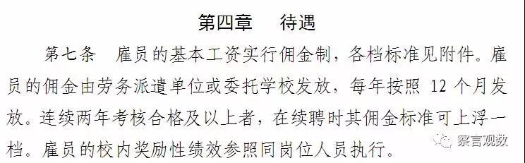 招聘公告里没有说明待遇参照在编人员的人才派遣基本就属于这种,大多数情况下实行「非同工同酬」人才派遣聘用方式的高校,人才派遣人员薪资待遇都比同级同岗事业编制人员要低不少。如下两图,某些高校对于人才派遣实行的是基本工资佣金制度,基本工资,住房公积金,社会保险缴纳基数都和在编人员有较大差距。