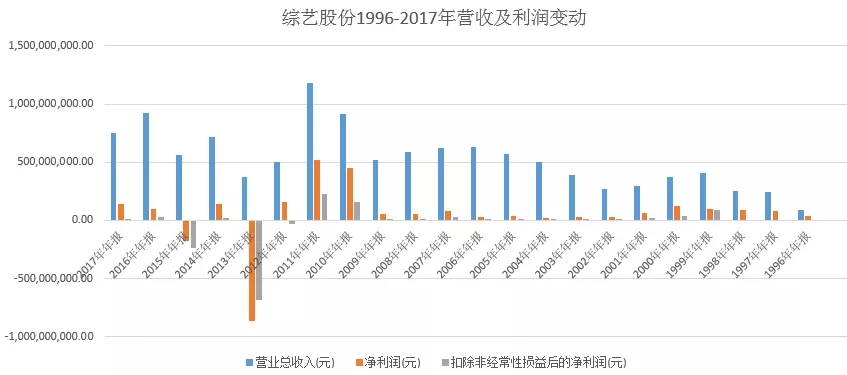 综艺股份自从1996年上市以来,一直“践行”多元化,并被股民称为“故事大王”。这家公司先后涉足集装箱底板、胶合板、服装、互联网、太阳能、高温超导、创投、软件零售、集成电路、芯片、智能卡业务、地产、餐饮等大量行业。