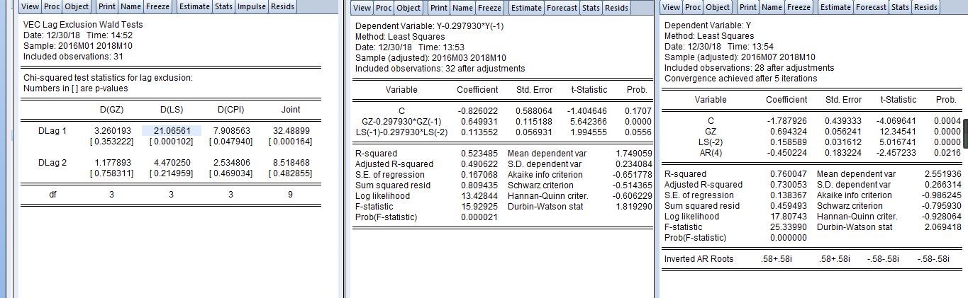 okab 发表于 2018-12-30 15:37 现有被解释变量Y,解释变量A,B,C,在eviews里做ols,修正了自相关后,发现存在异方差,(如图中右表和中间的 ...