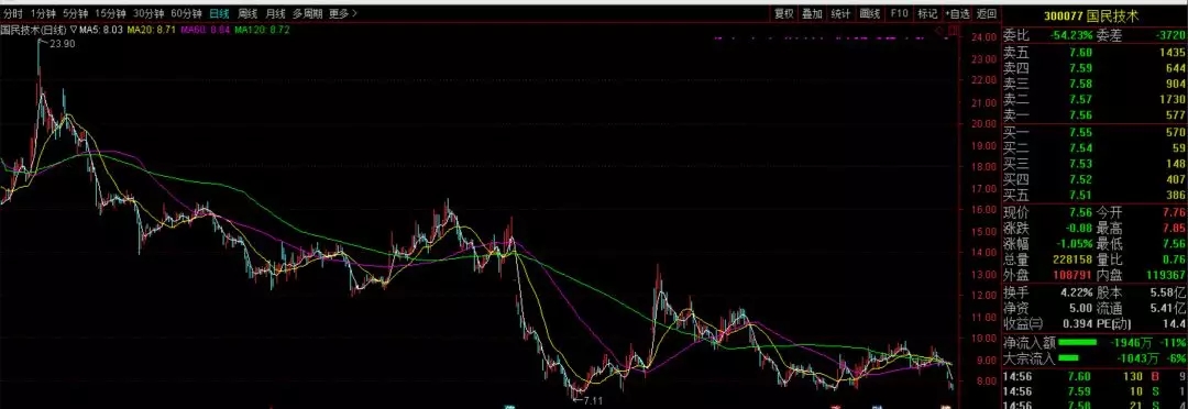 公司IPO时发行价每股87.5元,2018年12月27日收盘价7.56元,复权价格不到40元,上市8年8个月,跌掉了一半市值。在此笔者为国民技术9万多小股东的命运祷告!!!