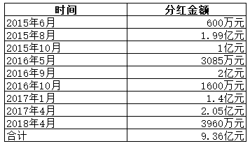 而2015-2018H1的净利润分别为2.45亿元、2.68亿元、2.74亿元及1.78亿元,这意味着三年半共计9.65亿元的利润基本被股东全部分光。