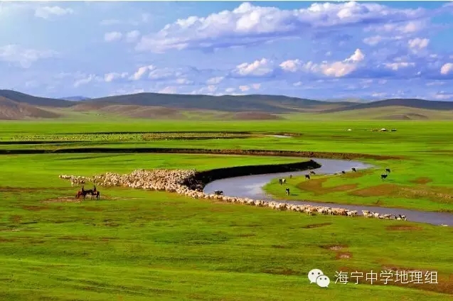 [size=3em]“问:为何内蒙古草原上的河流多“蛇曲”形态?答案:地势平坦,河流多侧蚀。