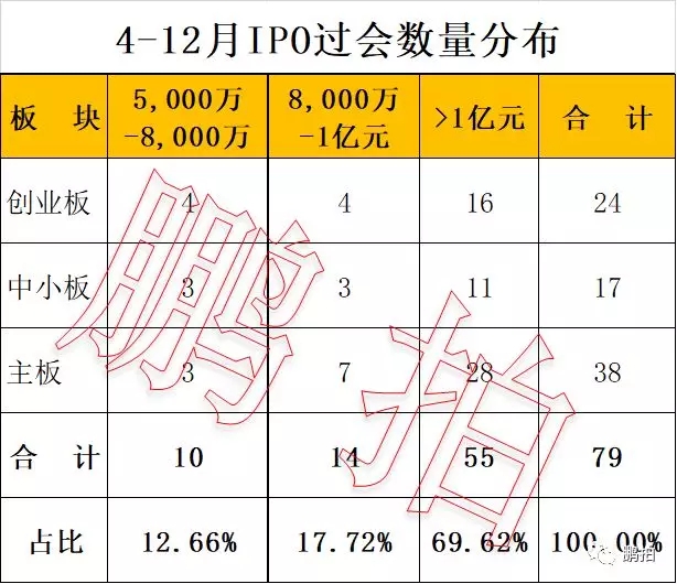 过会门槛2018年3月底“主8创5”(主板(含中小板)申报期最后一年利润至少8,000万元、创业板5,000万元)的过会门槛流出。
