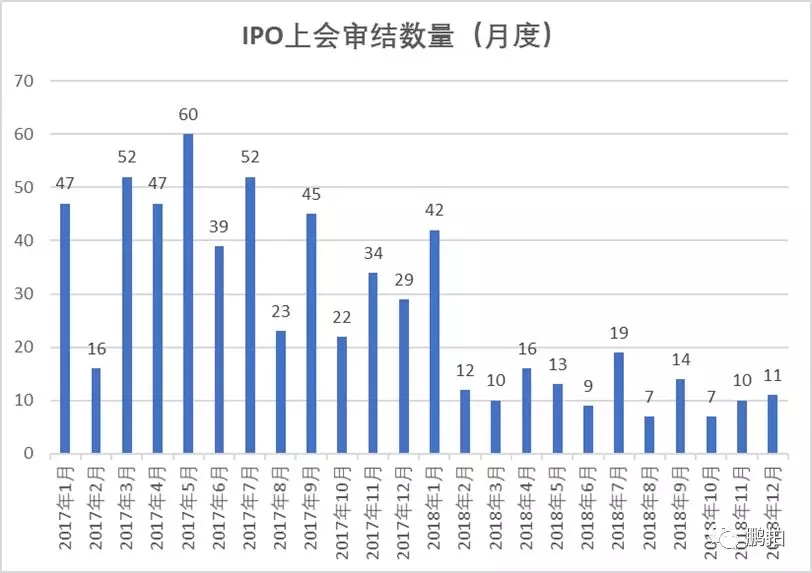 2018年则除了1月份之外,其余月份均低于20家,IPO降速非常明显。