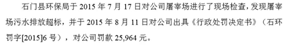 除此之外,该公司还涉及环保问题,2015年曾因污水排放超标被处罚2.6万元。