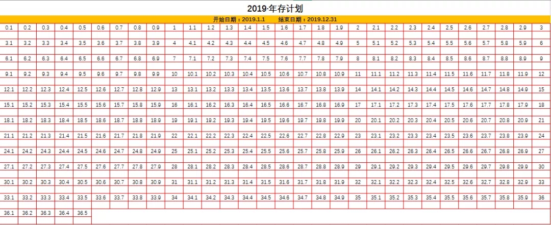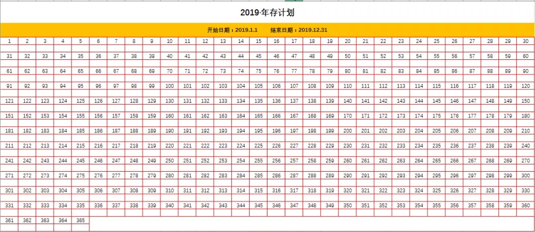 ——365天存钱计划表