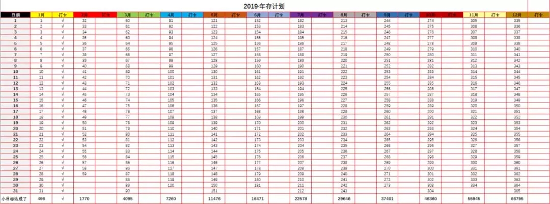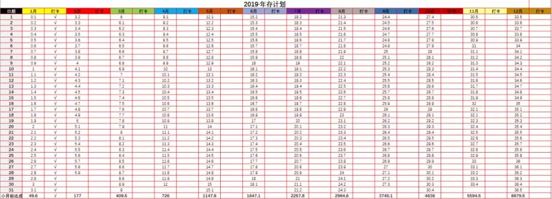 ③尽管对着表放钱就好,不要每天去看。可能每一笔小钱,尤其是1毛钱版本,每一笔金额都不大,觉得存了跟没存没什么区别。有了这种想法,可能你会坚持不下来。所以,尽管去放,不要每天去看,年末揭晓,才有惊喜。
