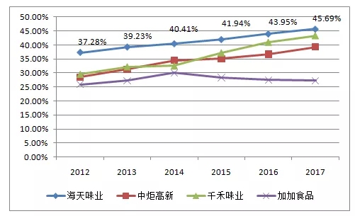 从这个方面看,即使海天坚持同等级产品售价更低,同价位产品品质更优的定策略,其毛利率依然高于同行业其他公司。