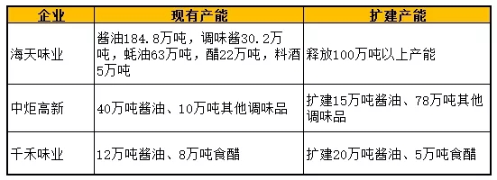 而其竞争对手中炬高新和千禾味业的酱油产能分别只有40多万吨、12万吨,产能远远低于海天。