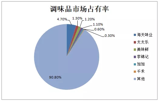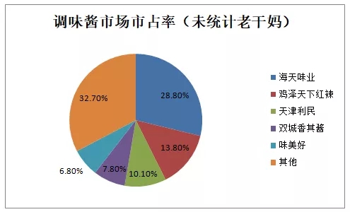 调味酱品类丰富,除了“老干妈”在油辣椒酱市场有较强统治力外,其他品类仍然缺乏领军企业。