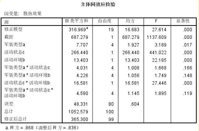 最后就是看 活动状态c,活动环境b,活动环境b*活动状态c 这三个p值小于0.05,拒绝原假设,