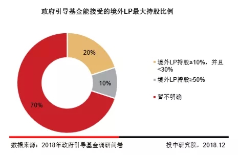调研结果显示,70%的政府引导基金暂未明确境外LP的最大持股比例限制。政府引导基金对境外LP持比例持较为谨慎态度。