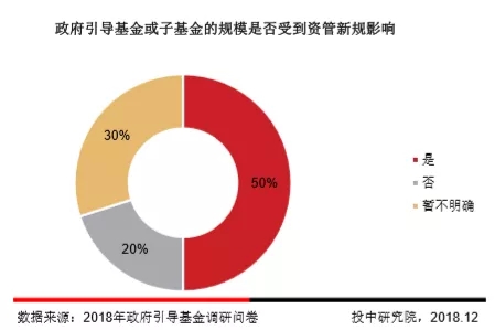 50%的政府引导基金受到资管新规的影响,但也有20%的政府引导基金不受本次资管新规的影响。总体上看,在募资难的背景下资管新规给政府引导基金及其子基金的募资增加了一定难度。