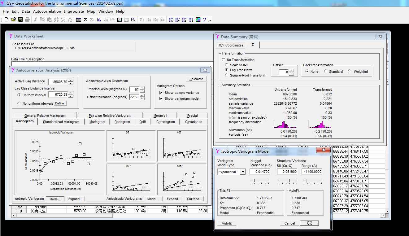求助前辈,我是gs+的初学者,欲研究房价数据的空间分异,将自己的数据导入到gs+中,采用默认的active lag distance和lag class distance interval,发现指数模型拟合最好。有以下几个问题: