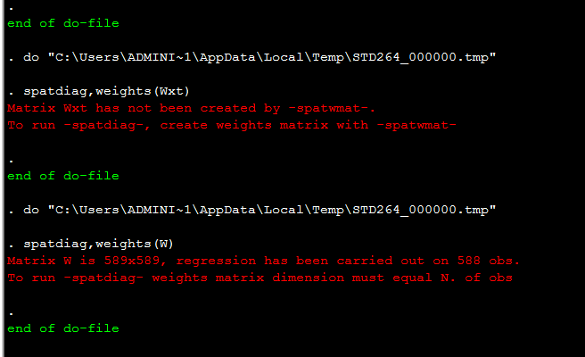 在做空间计量的时候出现了以下问题,请问这是怎么回事?谢谢大家解答。支持有偿服务。