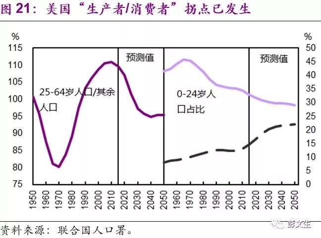 以上我们从人口、金融两个完全不同的视角,分析了过去主要经济体宏观经济失衡的大周期轮回。两者虽然源自截然不同的经济学理念,但对经济现象的解释并不矛盾,实际上两者在同一个方向起作用,对战后1950-1970年的“高通胀、金融稳定、贫富分化小”和过去40年的“资产泡沫、金融危机、贫富分化”有叠加的影响(图19)。
