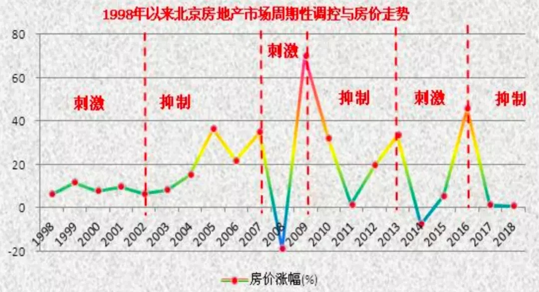 接下来,对于房产投资者来讲,就是选时,或者说房产买卖时节点,因时而动。从北京20年的房地产市场来看,房价走势有着深深的政策调控烙印。