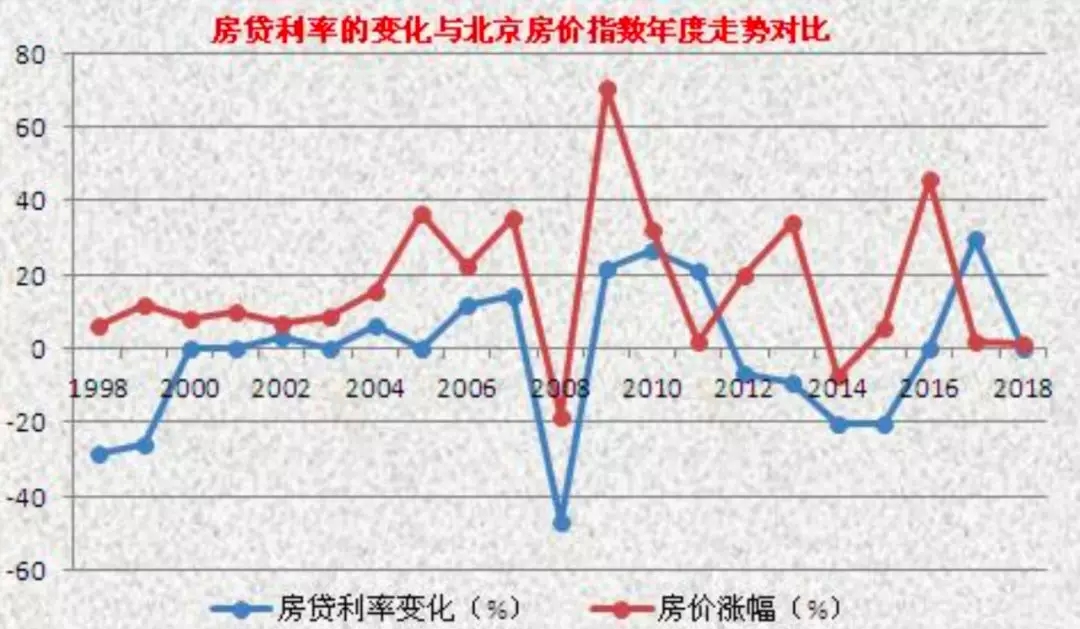 所以,在1998年至2007年,央行的利率刺激和抑制和北京房价的走势基本不相关。我们也发现,在2008年至2016年,北京房价和利率呈明显的逆向走势,利率对房价呈反向影响:即房价随着利率的上调而下降,随着利率的下调而上涨。