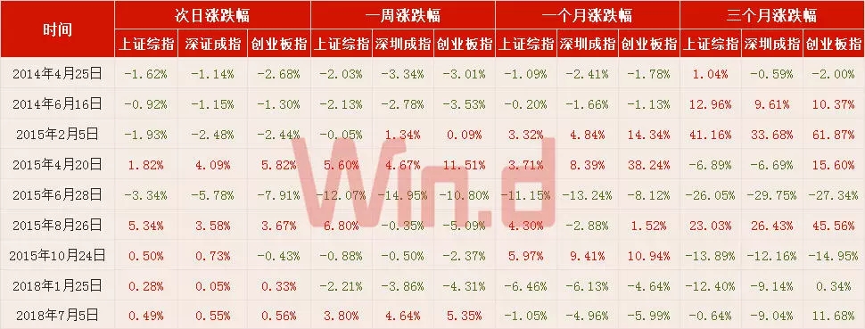 Wind数据显示,2014年两次定向降准,A股市场主要指数在3个月后出现上行;2015年五次定向降准,叠加牛市效应,除了当年6月、10月指数回调外,A股市场主要指数一周、一月、三个月期间均出现明显上行。