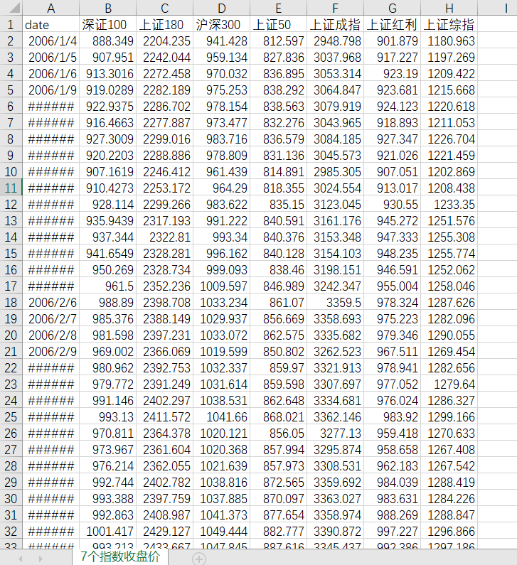 上证50,上证180,深证100,沪深300,上证红利,上证综指,深证成指等指数及其成份股数据,包括2006年1月1日以来的收盘价和涨跌幅数据,按需下载,整理不易