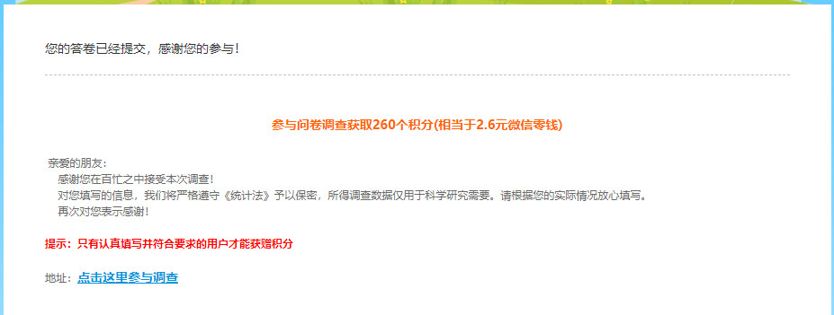 一共16道量标题,问卷填完可以领取20个论坛币,