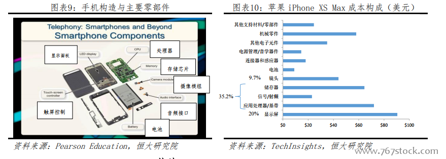 高端市场仍被苹果、三星掌控。以 2017 年第四季度为例,苹果出货量仅占行业整体的 20%,但销售收入和利润占比分别高达 50%和 87%。从单机销售均价(PUR, per unitrevenue)来看,苹果、三星、华为和其他品牌 PUR 分别为 794、255、205、149 美元/部。凭借强大的品牌溢价,苹果牢牢占据高端市场,即使在销售淡季苹果利润占比也高达 60%,超过所有其他品牌之和。巨大的利润使得苹果在研发、创新与品牌方面的投入更具优势,从而形成良性循环、进一步巩固行业地位。