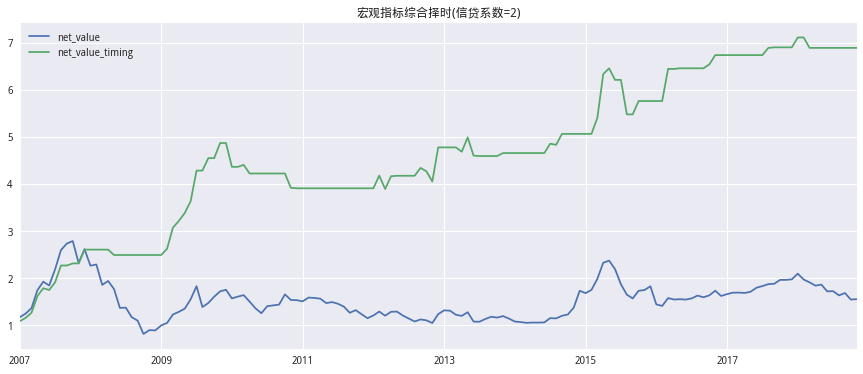 宏观综合择时策略的夏普率为0.74,年化收益率为15.69%,相比各单类择时指标有着显著提升。