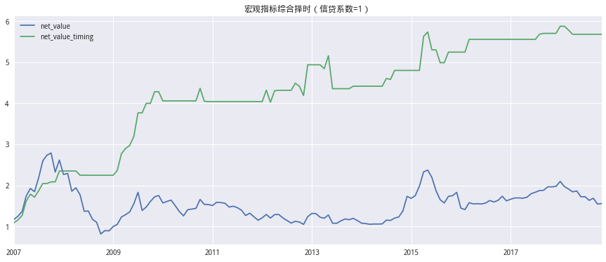 由于存款准备金率的变动是一个低频信号,不能作为常规的信号源,因此我们将该指标作为一个额外加分项合并到信贷类指标中(权重暂定为0.3分,当信贷指标总分值超过1分时设置为1分)。考虑降准指标后,策略夏普率从0.82增加到0.86,年化收益从17.68%上升到18.87%,可见总的来说降准对A股未来几个月的行情是一个积极信号。