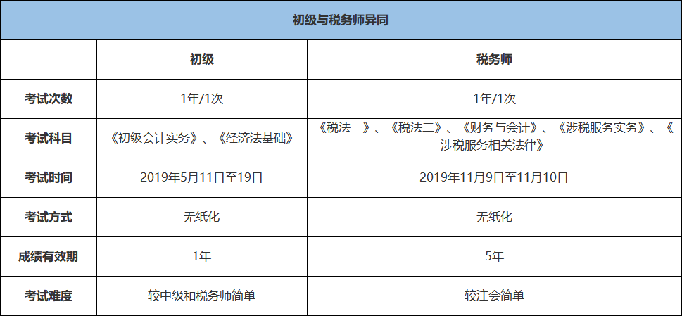 初级和税务师考试相比,难度较为简单。绝大多数考生在备考完税务师资格证考试后,都选择了转战初级考试。