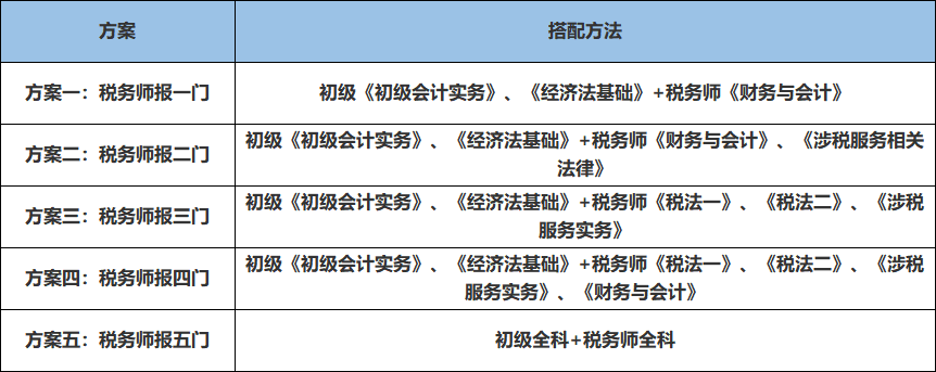 如果考生已经通过了初级会计职称,推荐第一次报考税务师的时候可以先报《涉税服务实务》和《税法一》和《税法二》,第二次考《财务与会计》和《涉税服务相关法律》,这样税务师的通过率会高很多。