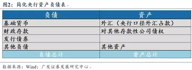 至此我们可以得到央行的简化资产负债表:资产项主要包括基础货币、政府存款、债券发行;资产项主要包括外汇资产、对其他存款性公司存款。