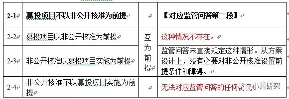 具体而言,鉴于具体情形的描述比较晦涩(互为前提是什么意思?死循环?以下只能把互为前提拆开),本文结合募投项目是否以非公开核准为前提和募投项目实施(重组)的时间(核准前或核准后)两个要点,将相关问题拆分为以下8种情形分别从监管问答中寻找答案。