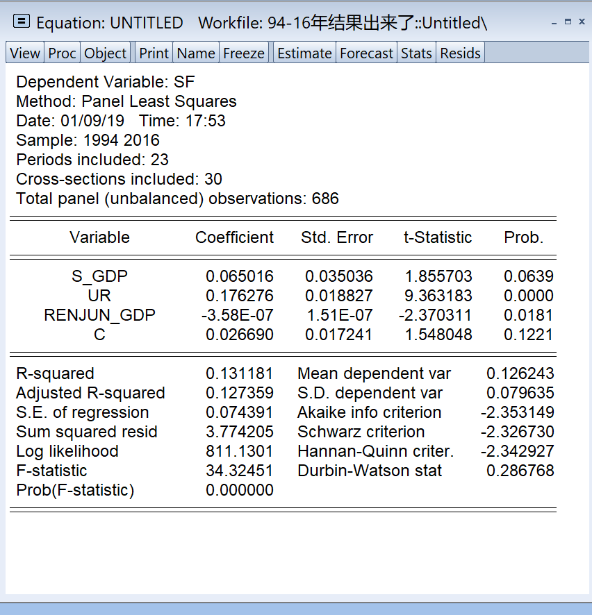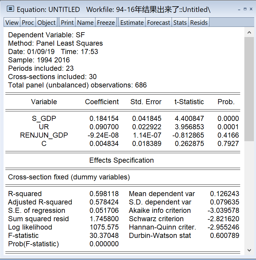 eviews个体固定效应模型模型出来的结果,帮忙看看吧。。