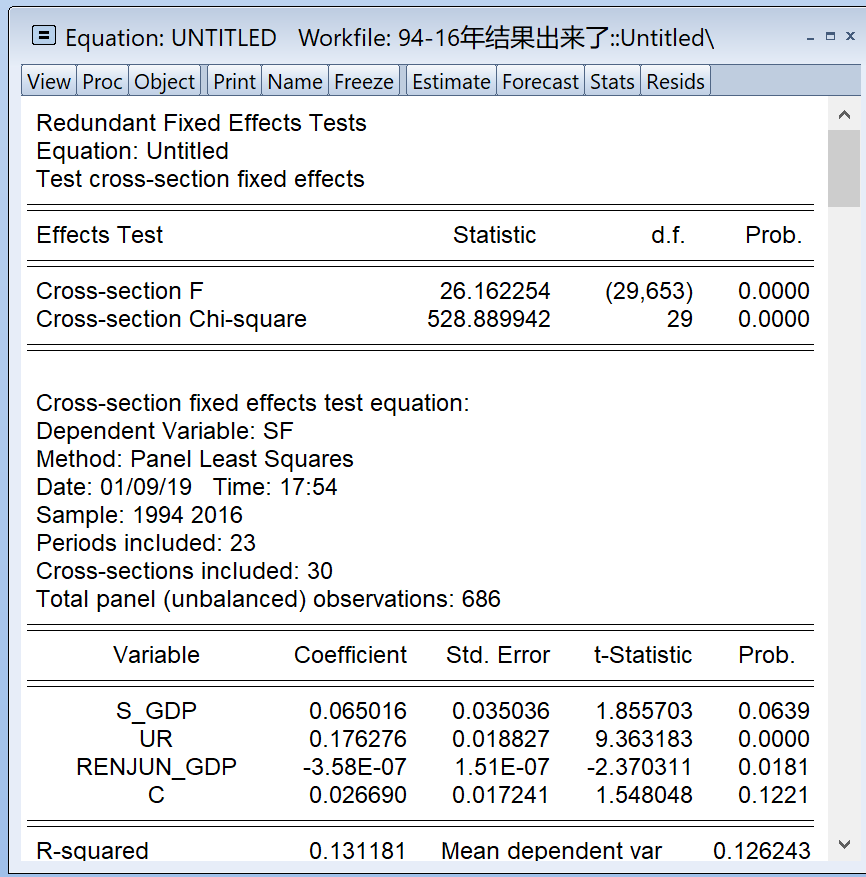 请教EVIEWS面板数据固定效应模型操作中的问题