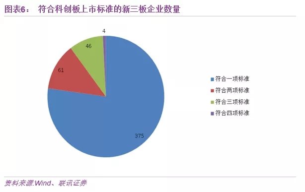 在符合科创板上市标准的486家企业中,仅有4家同时符合四项标准,46家企业同时符合三项标准,61家企业同时符合两项标准,375家企业符合一项标准。