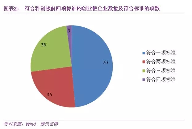 3、大多数创业板企业符合科创板要求,但多数仅符合第一项标准