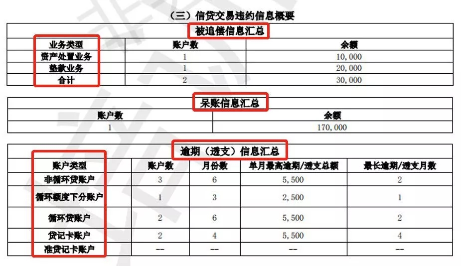 2、新增违约信贷信息分类展示,让违约信息更加具体化。