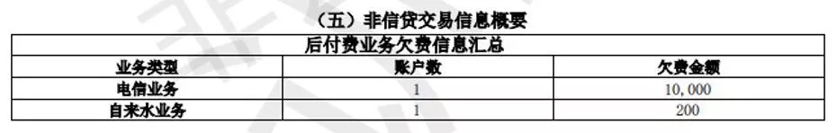 5、非信贷信息展示。电信欠费和自来水业务欠费,这两个执行起来有困难。