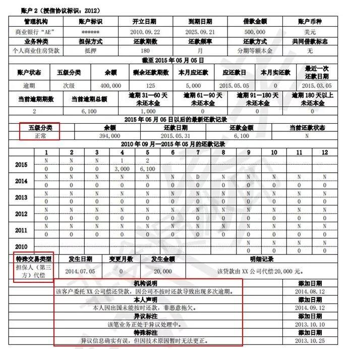 2、非循环贷账户,如房贷显示最近60个月的还款记录。