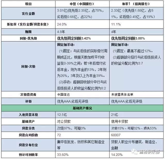 以下选取中国银行和招商银行的两单产品,来分析不良资产ABS的业务模式。这两单产品的基础资产比较具有代表性,且是今年最早发行的两单。
