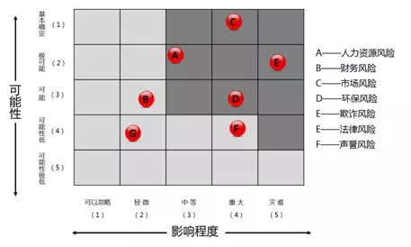 进入风险分析阶段,要从风险发生的可能性和对公司目标的影响两个角度进行评判,设定统一标准对各个风险发生的可能性和影响程度分别进行定量的评分,按风险值(风险可能性分值×风险影响分值)对风险进行排序,作出符合企业自身情况的风险热力图。